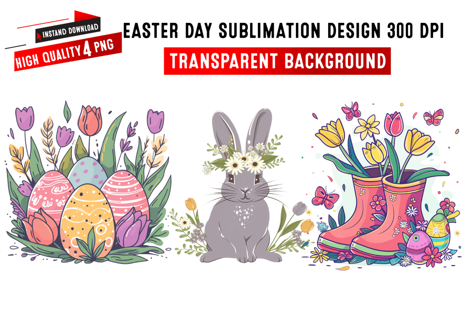 A high-quality Easter Clipart sublimation design perfect for t-shirts, mugs, ornaments, pillows, cards, stickers, printables, and more. Created in vibrant colors and sharp details, ready for instant printing.