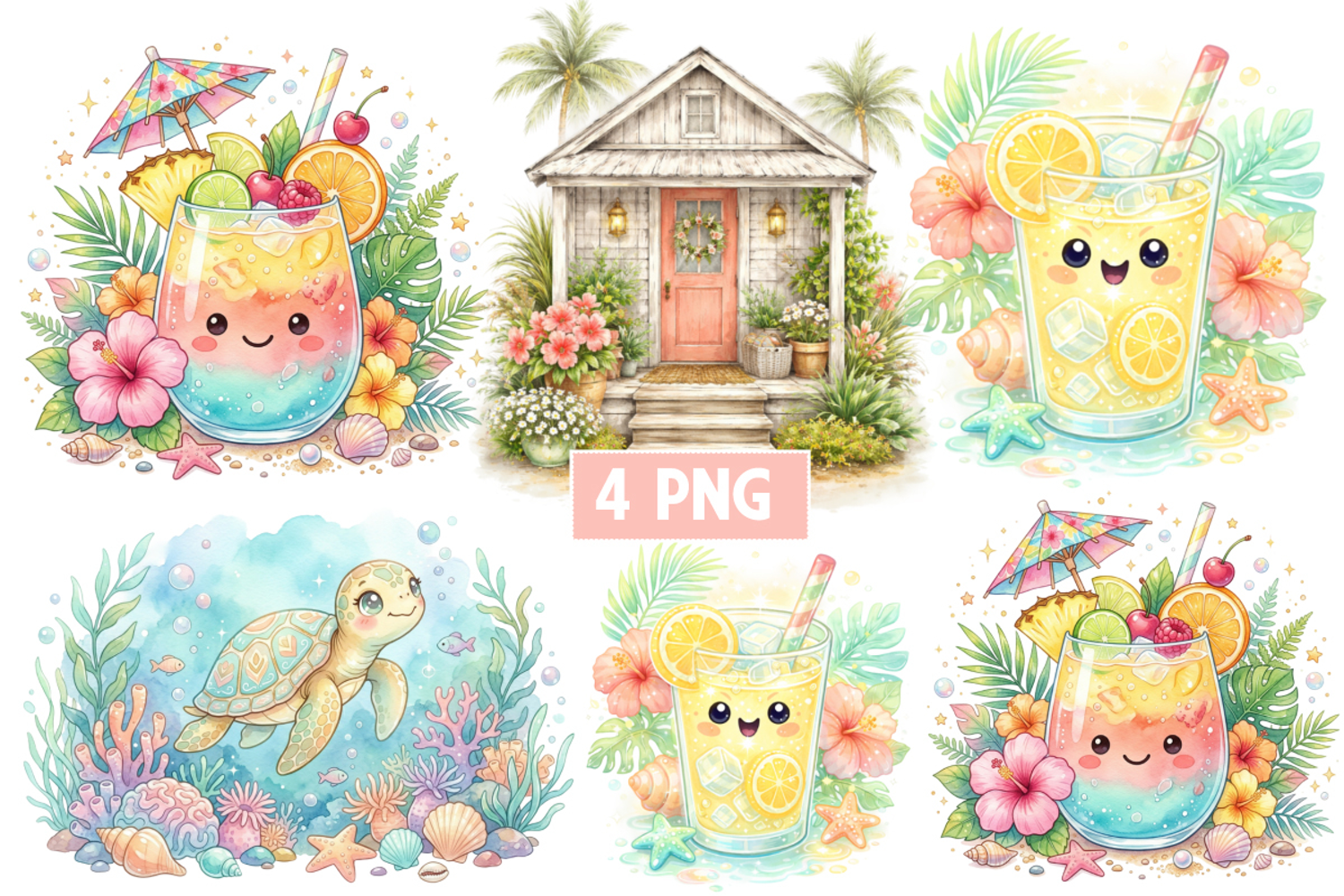 Summer Beach PNG | Tropical Drinks & Turtle Clipart example image 1