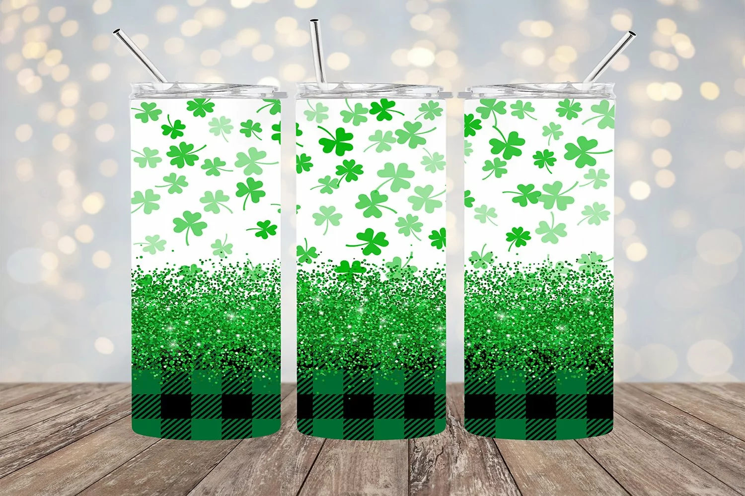 Clovers Plaid and Glitter - 20oz Sublimation - PNG Design