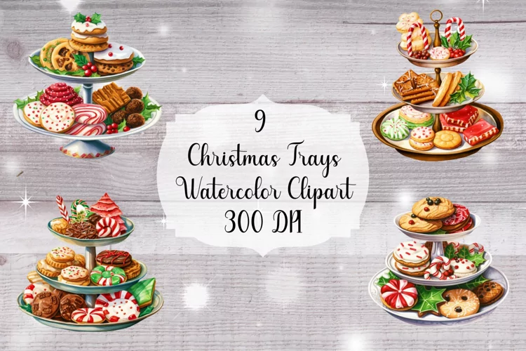 Christmas Trays Bundle- Watercolor Clipart- 9 PNG Designs