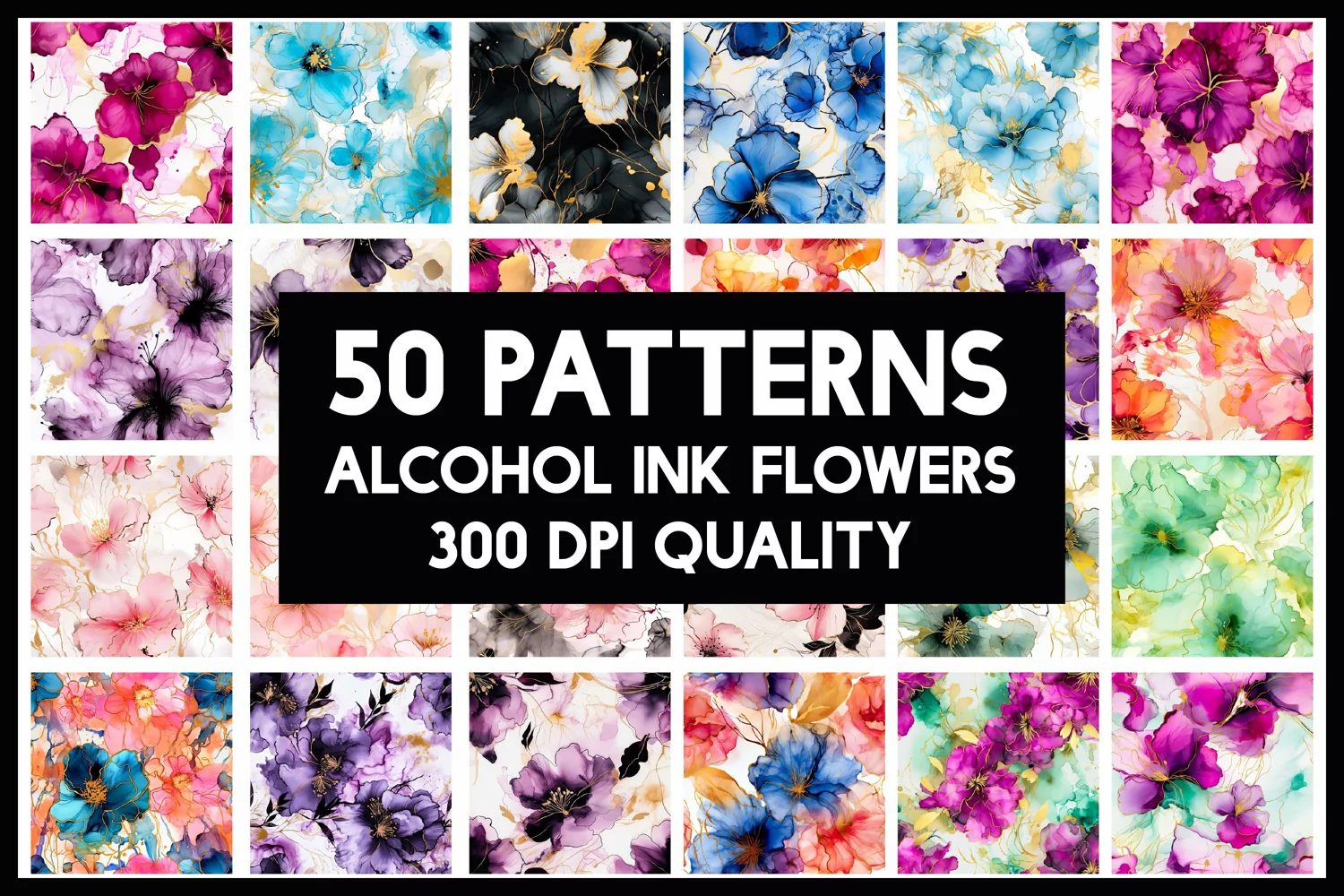 50 Watercolour Alcohol Ink Flowers Patterns I Digital Papers