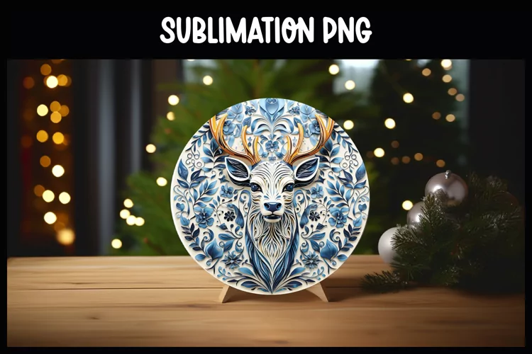 3D Deer Christmas Ornament Round Sign I Winter Round Sign example image 1