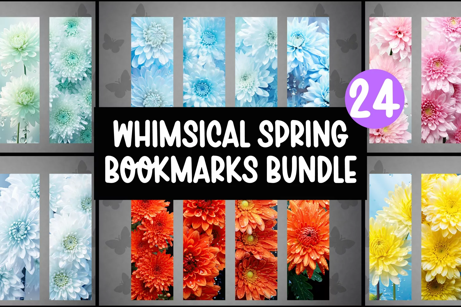 Similar Design Products to 24 Whimsical Flowers Bookmarks Sublimation PNGs I Bookmarks