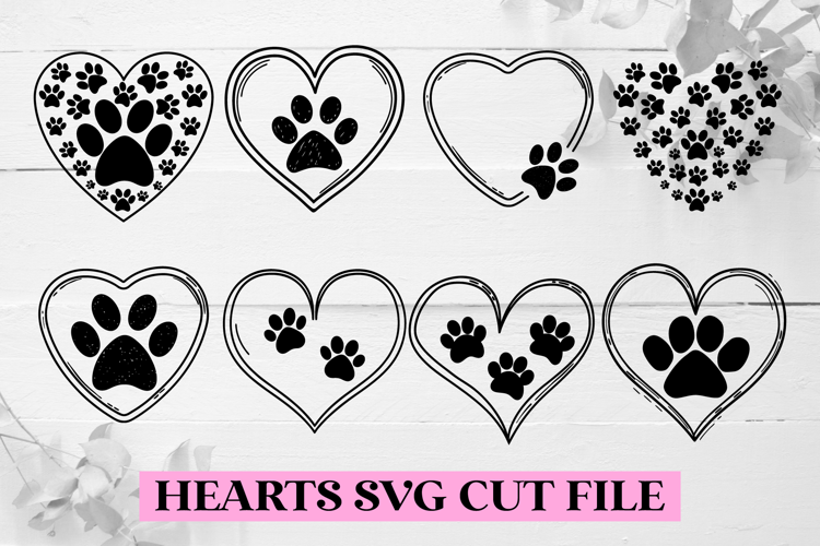 8 Paws Hearts SVG Cut File, Heart Vinyl Decal SVG