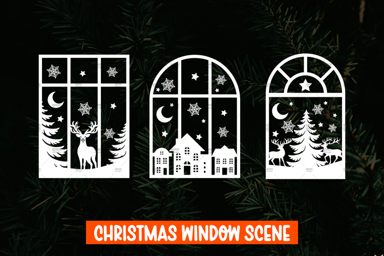 3 Christmas Window decal SVG, Christmas Window Display SVG