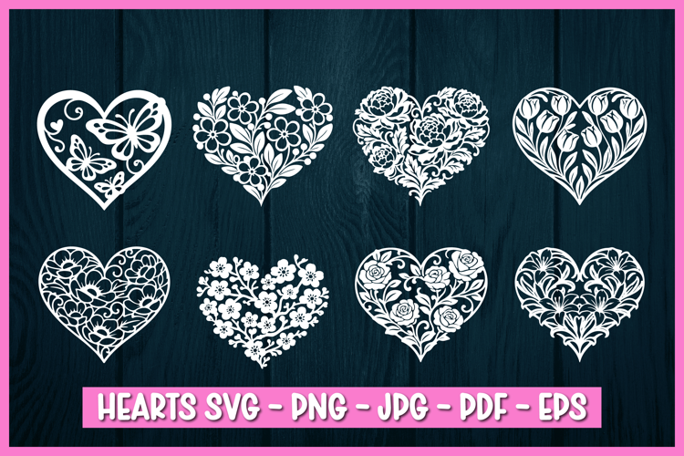 8 Paper Cut Floral Heart , Paper Cut Heart SVG