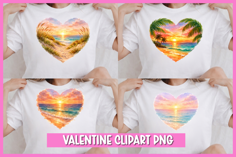 Similar Design Products to Heart Shaped Beach Watercolor Clipart I Valentine Watercolor