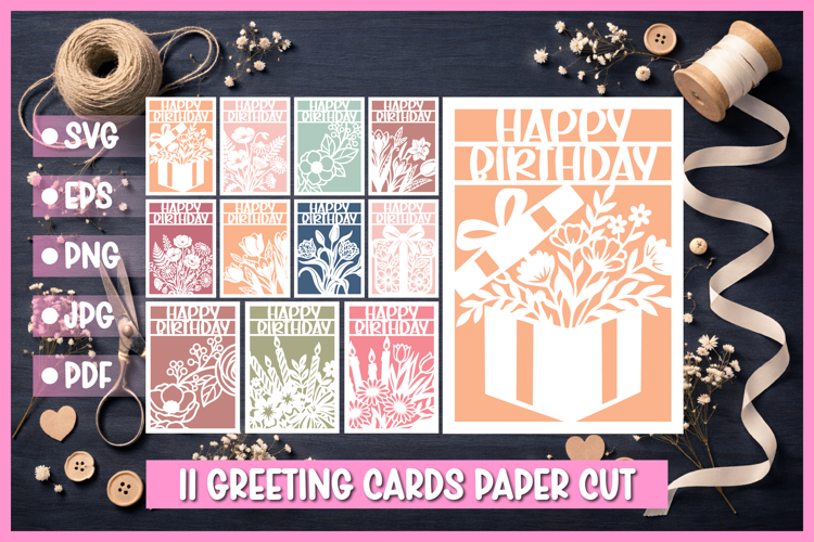 11 Happy Birthday Greeting card SVG,Paper cut SVG Birthday