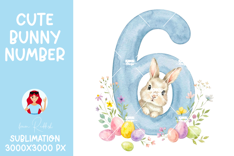Easter Bunny Number 6 PNG,Baby Shower Sublimation Design example image 1