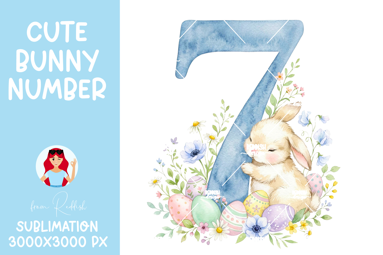 Easter Bunny Number 7 PNG,Baby Shower Sublimation Design