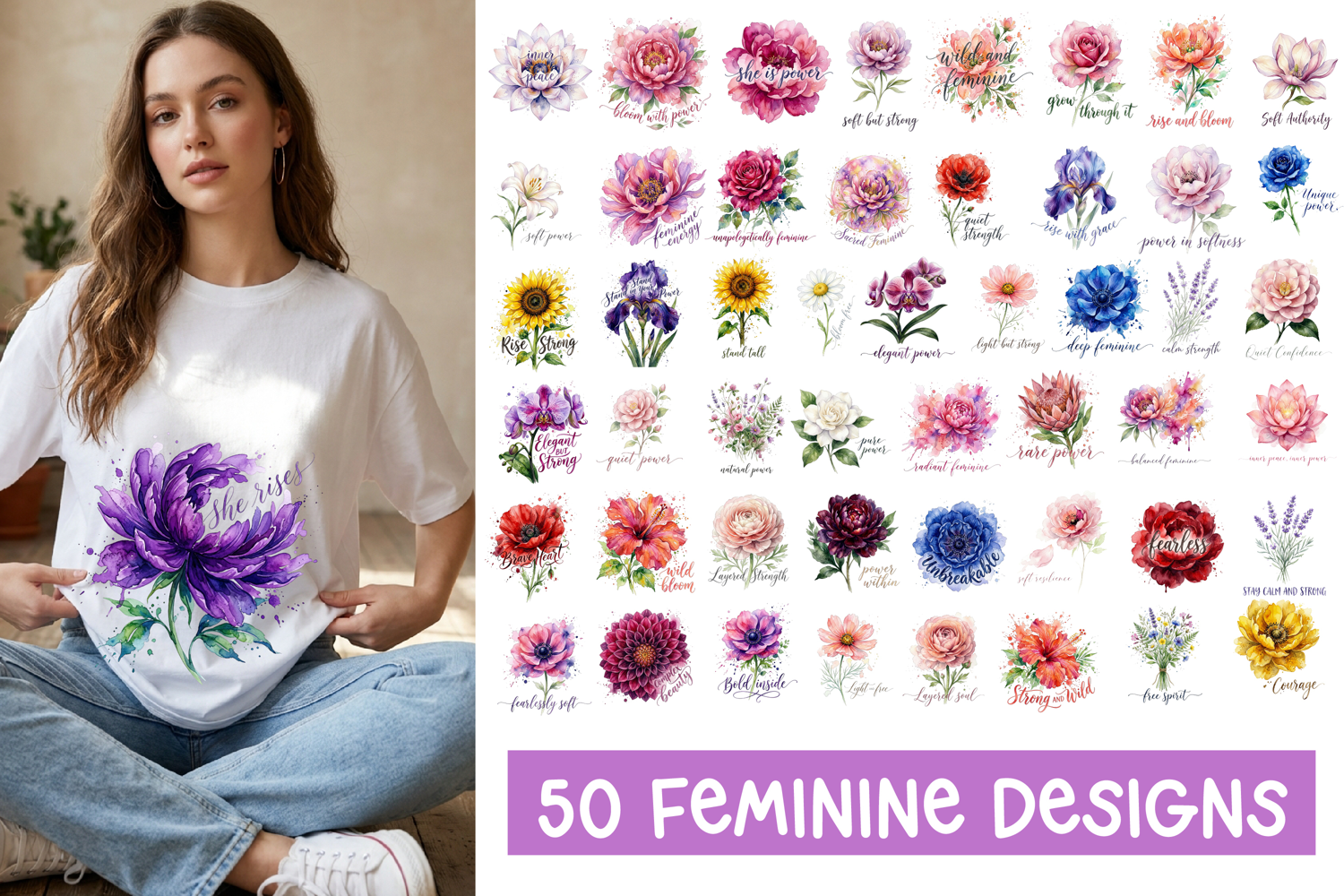 Similar Design Products to 50 Feminine Floral Designs Watercolor Flowers & Quotes