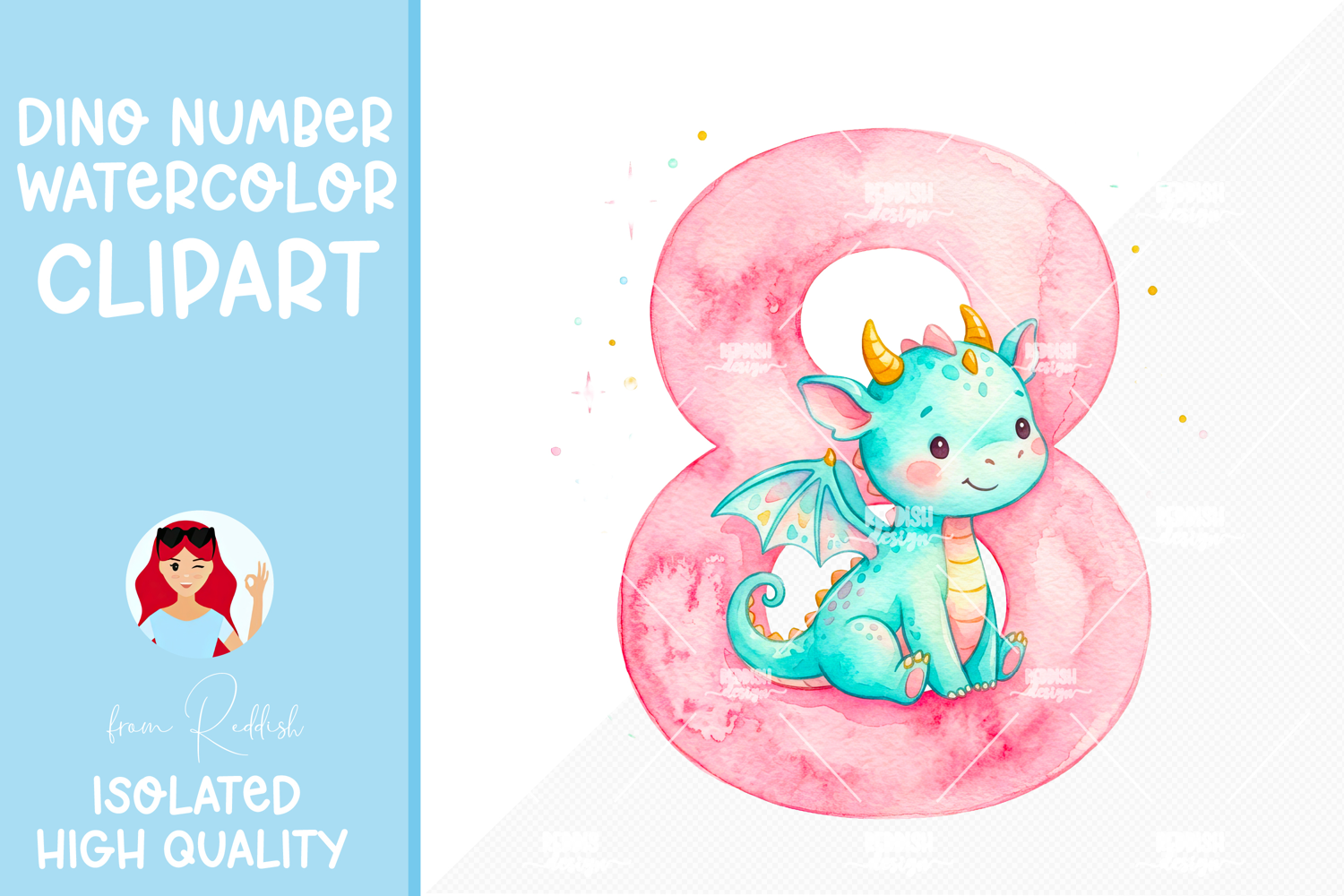 Dinosaur Number 8 Watercolor Clipart, Baby nursery design example image 1