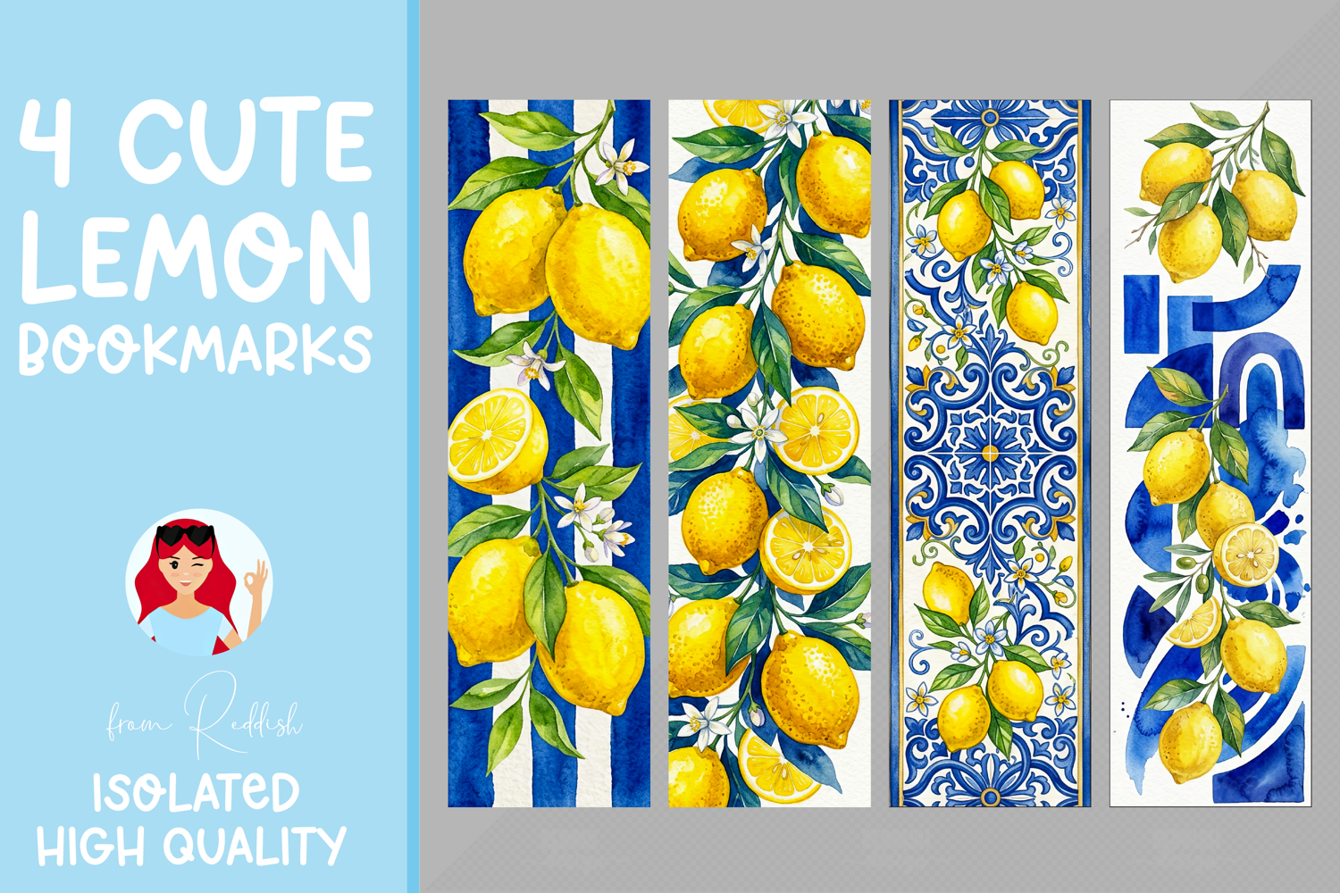 4 Watercolor Lemon Bookmarks, Mediterranean Citrus Design