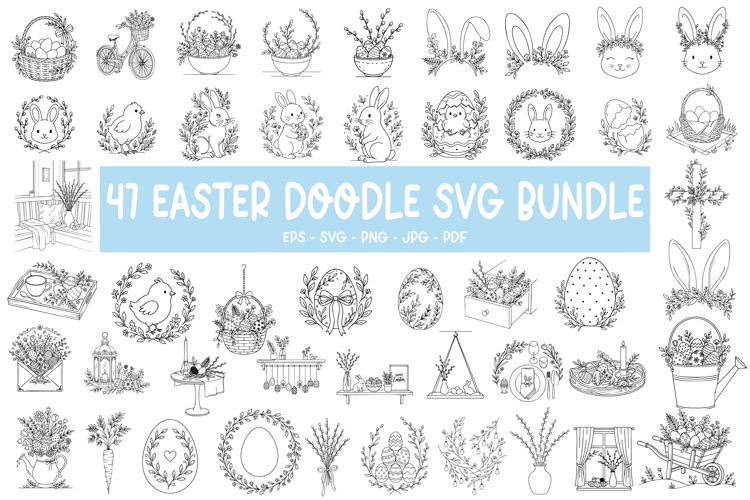 47 Easter Doodle Bundle Line Art Cut File