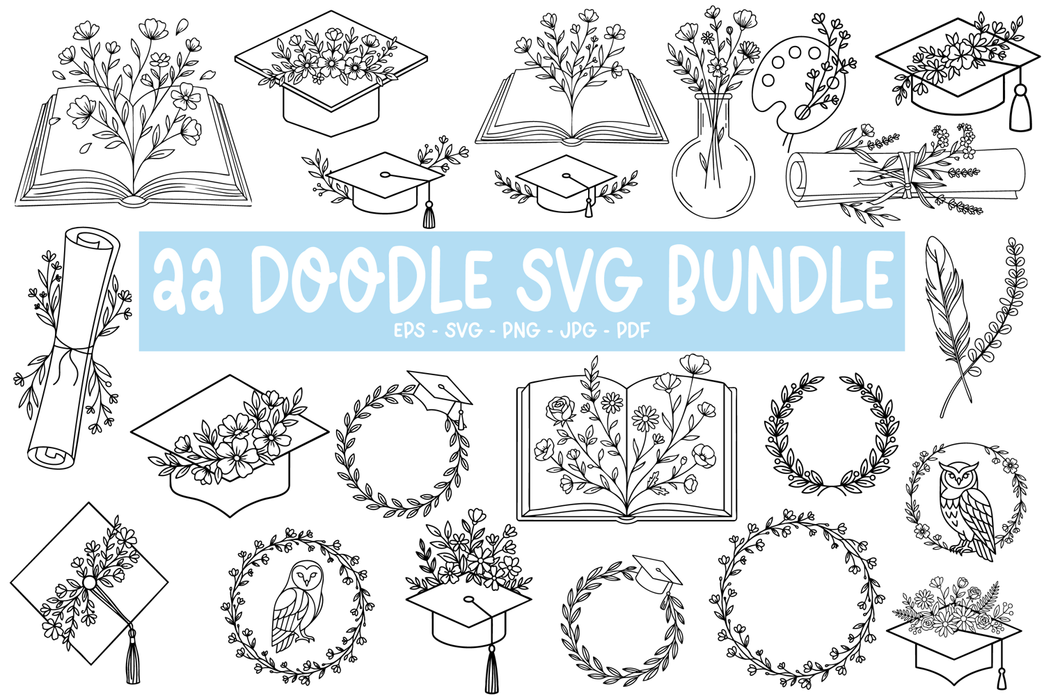 Floral Wreath Cricut Files Graduation Cap Graduation Svg School Elements Student Design Diploma Illustration Academic Clipart Outline Graphics Education Doodle