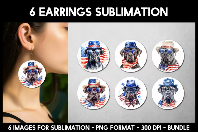 Round Earrings American Flag Sublimation Watercolour Sublimation Patriotic Earrings 4th July Sublimation Independence Day Earrings Watercolour Earrings Sublimation Watercolour Earring Round Dog Round Earrings Patriotic Cane Corso