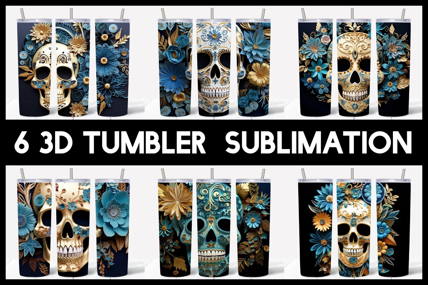 3D Skulls with Flowers Tumbler Sublimation |3D Halloween II example image 1