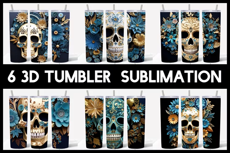 3D Skulls with Flowers Tumbler Sublimation |3D Halloween II