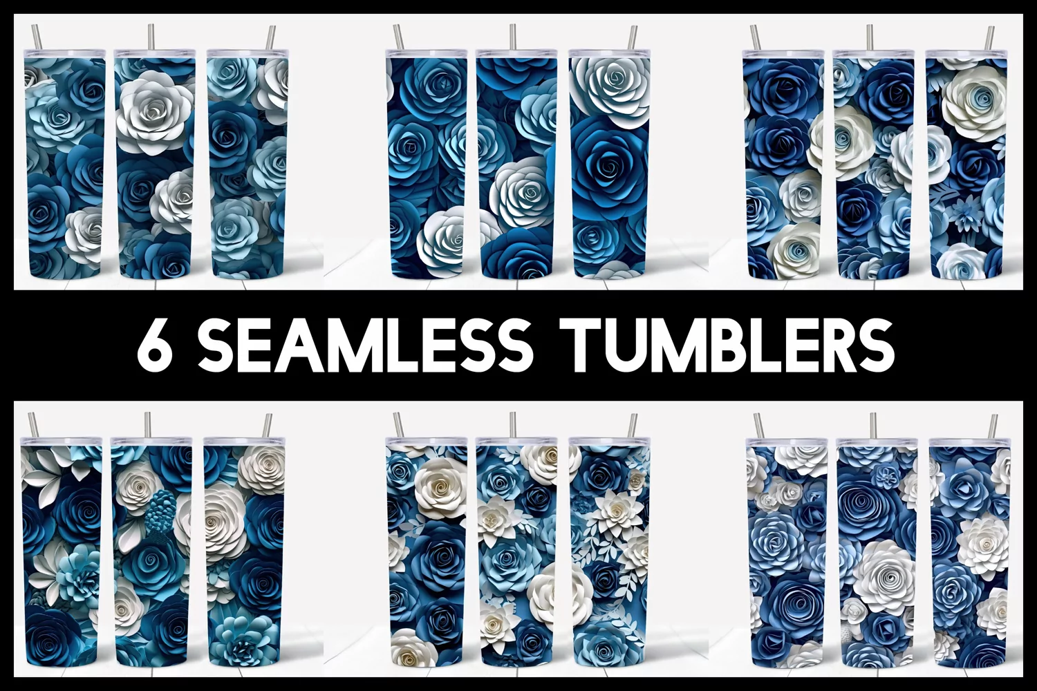 6 Seamless 3D Roses Flowers Tumbler Sublimation