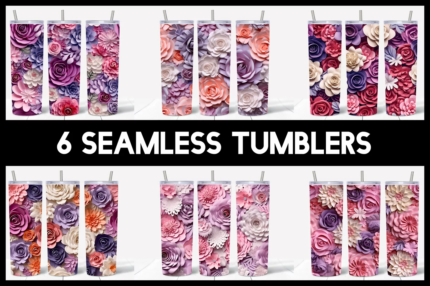 6 Seamless 3D Roses Flowers Tumbler Sublimation