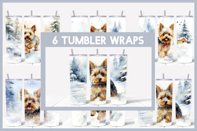 6 Winter Yorkshire Dog Tumbler Sublimation|Winter Tumbler