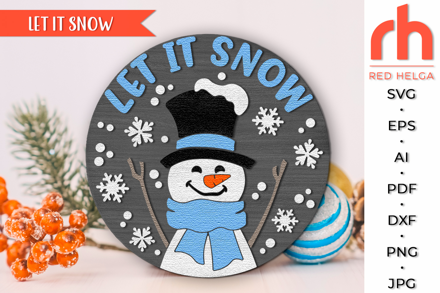 Let It Snow SVG, Layered Door Sign Cut File, Christmas Hanging Sign, Xmas Hanger DXF, Cute Snowman Silhouette, Holiday Decor, Winter Design - Cricut cut file, Silhouette cut file