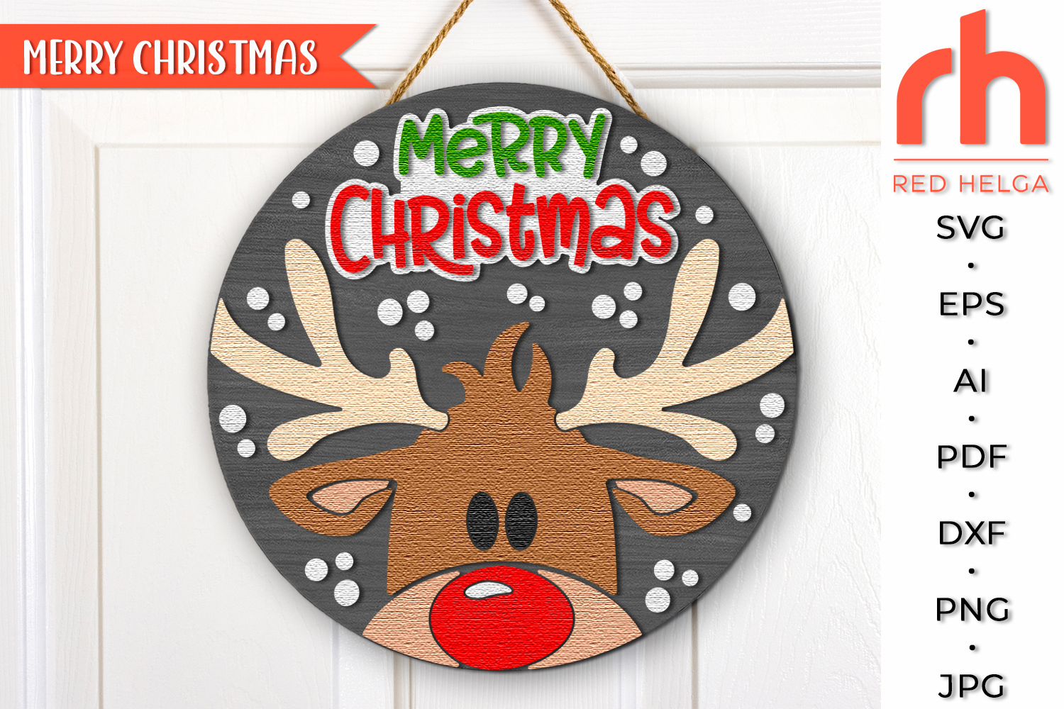 Merry Christmas SVG, Layered Door Sign Cut File, Xmas Reindeer Silhouette, Winter Hanger DXF, Holiday Hanging Sign - Cricut cut file, Silhouette cut file