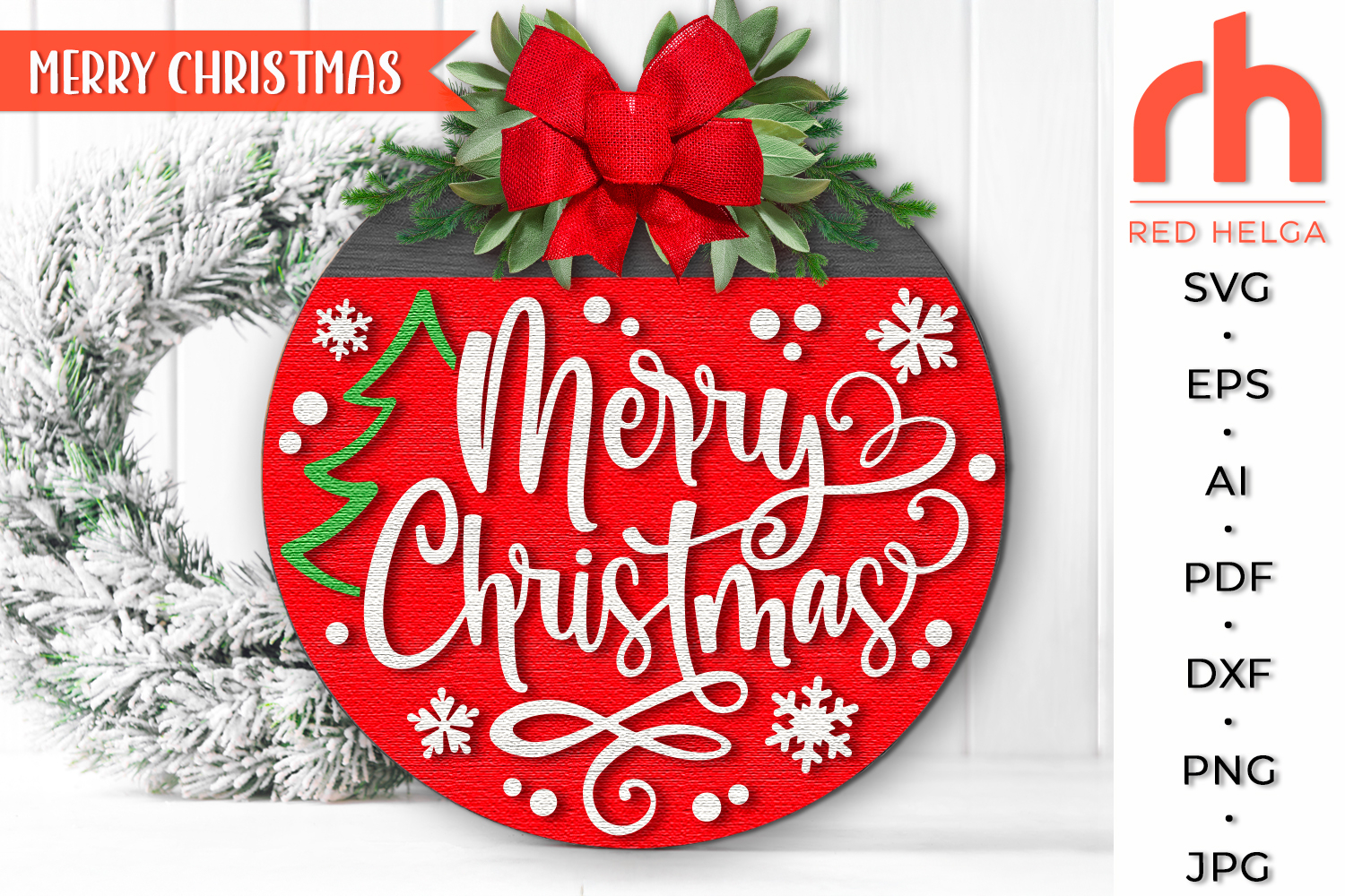 Merry Christmas SVG, Layered Door Sign Cut File, Xmas Hanger DXF, Holiday Hanging Sign - Cricut cut file, Silhouette cut file