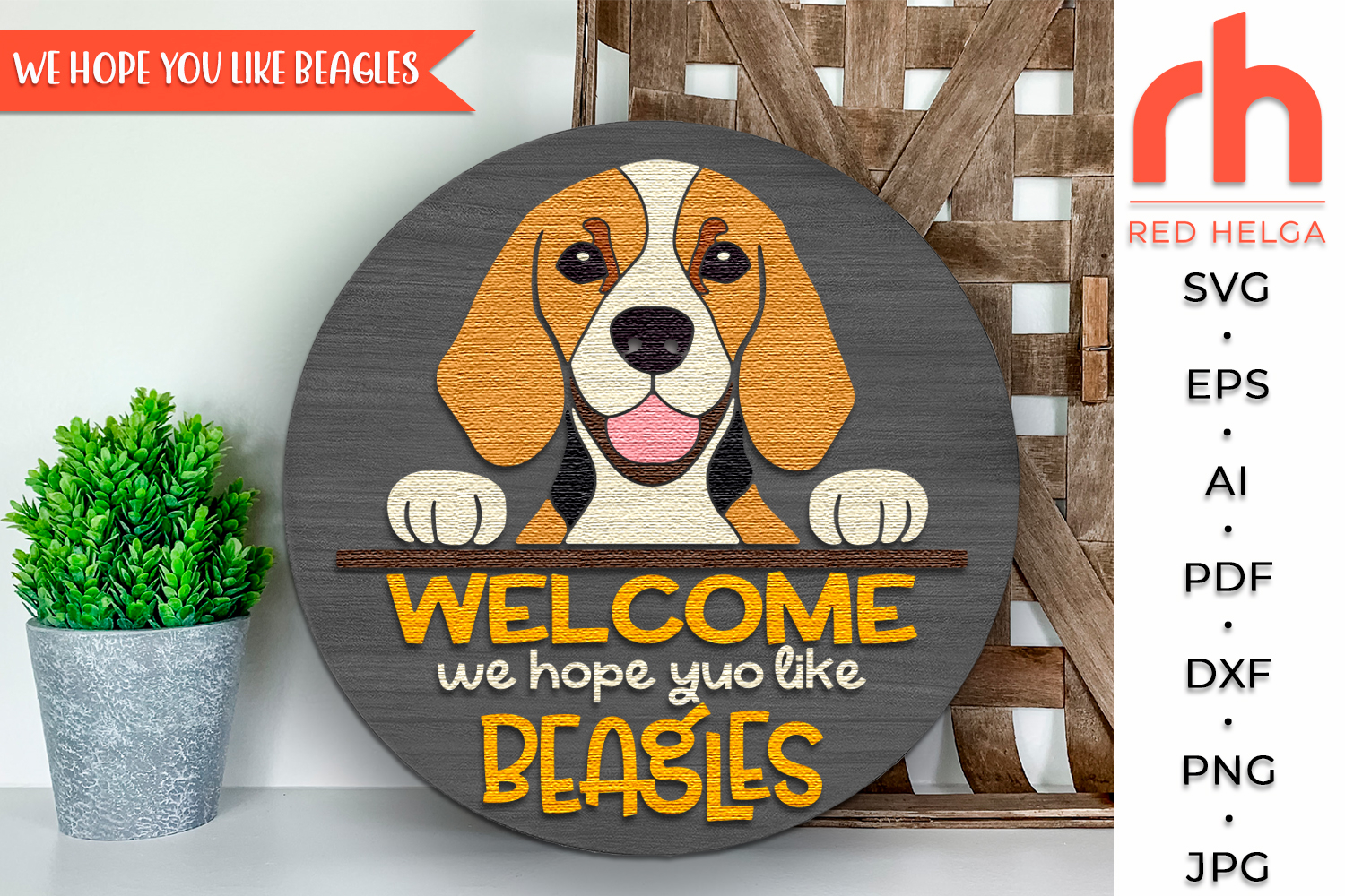 Hope You Like Beagles SVG, Layered Door Sign Cut File, Beagle Silhouette, Dog Hanger DXF, Pet Lover Hanging Sign - Cricut cut file, Silhouette cut file