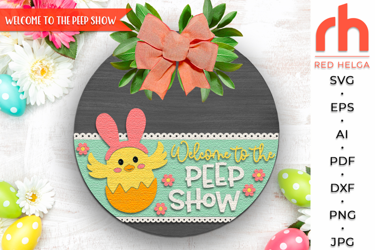 Welcome to the Peep Show SVG, Easter Door Sign Cut File, Farm Layered Round Hanger DXF, Easter Chicks Silhouette, Spring Hanging Sign - Cricut cut file, Silhouette cut file