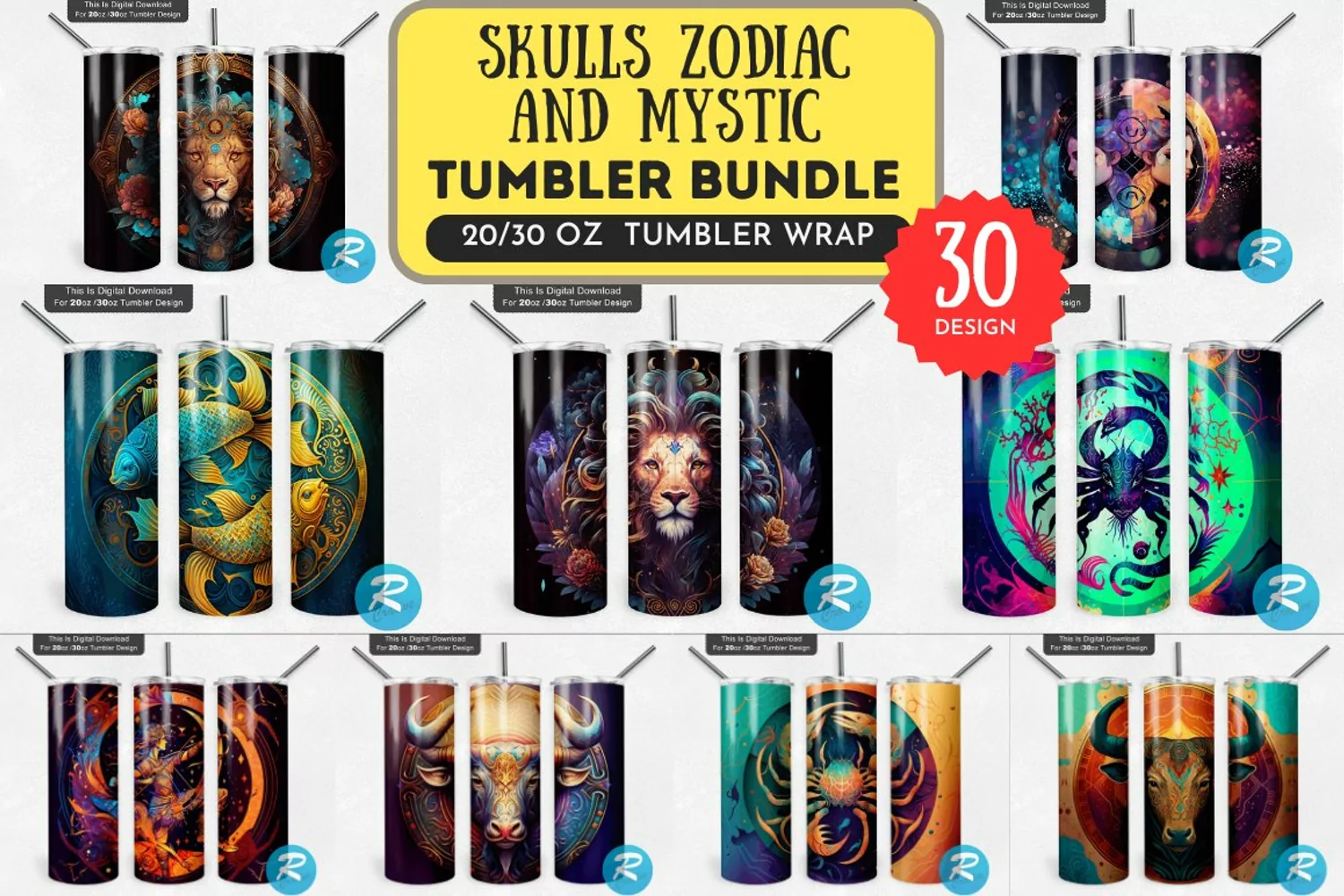 30 Skulls Zodiac And Mystic Tumbler Bundle, 20/30oz Skinny