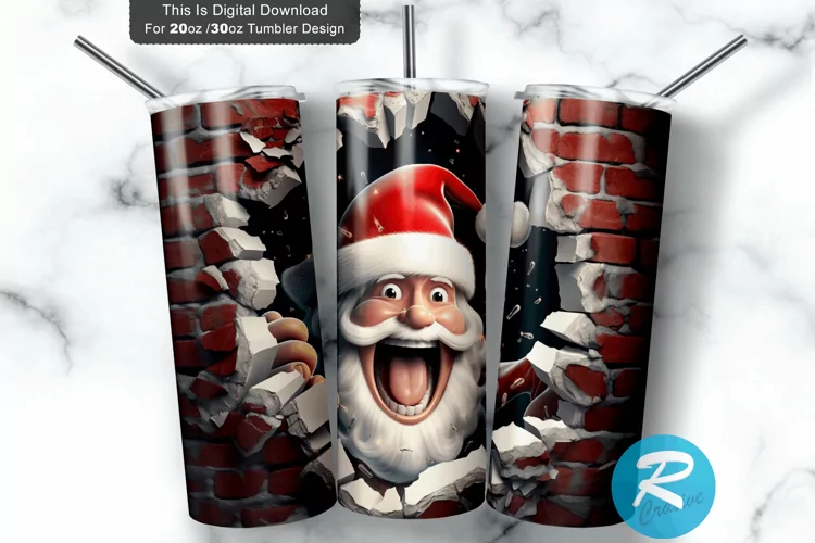 3D Christmas Santa Cracked Hole 20oz/30oz Skinny Tumbler