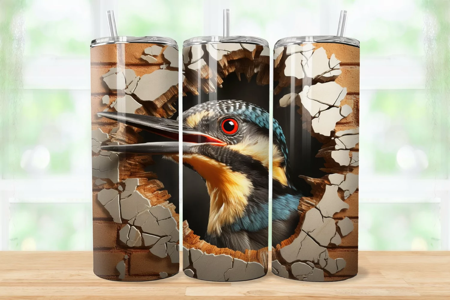 3d Bird Sublimation Design 20 Oz Skinny Tumbler Skinny Tumbler Wrap Tumbler Wrap Png 3d Tumbler Wrap 3d Tumbler Design 3d Hole 3d Cracked Hole Tumbler Wrap Woodpecker Tumbler