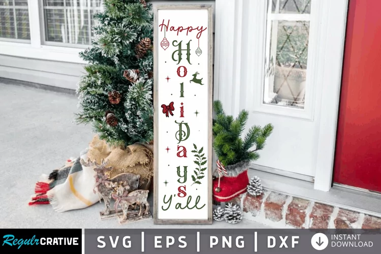 Happy Holidays Yall SVG, Christmas Porch Sign SVG Design