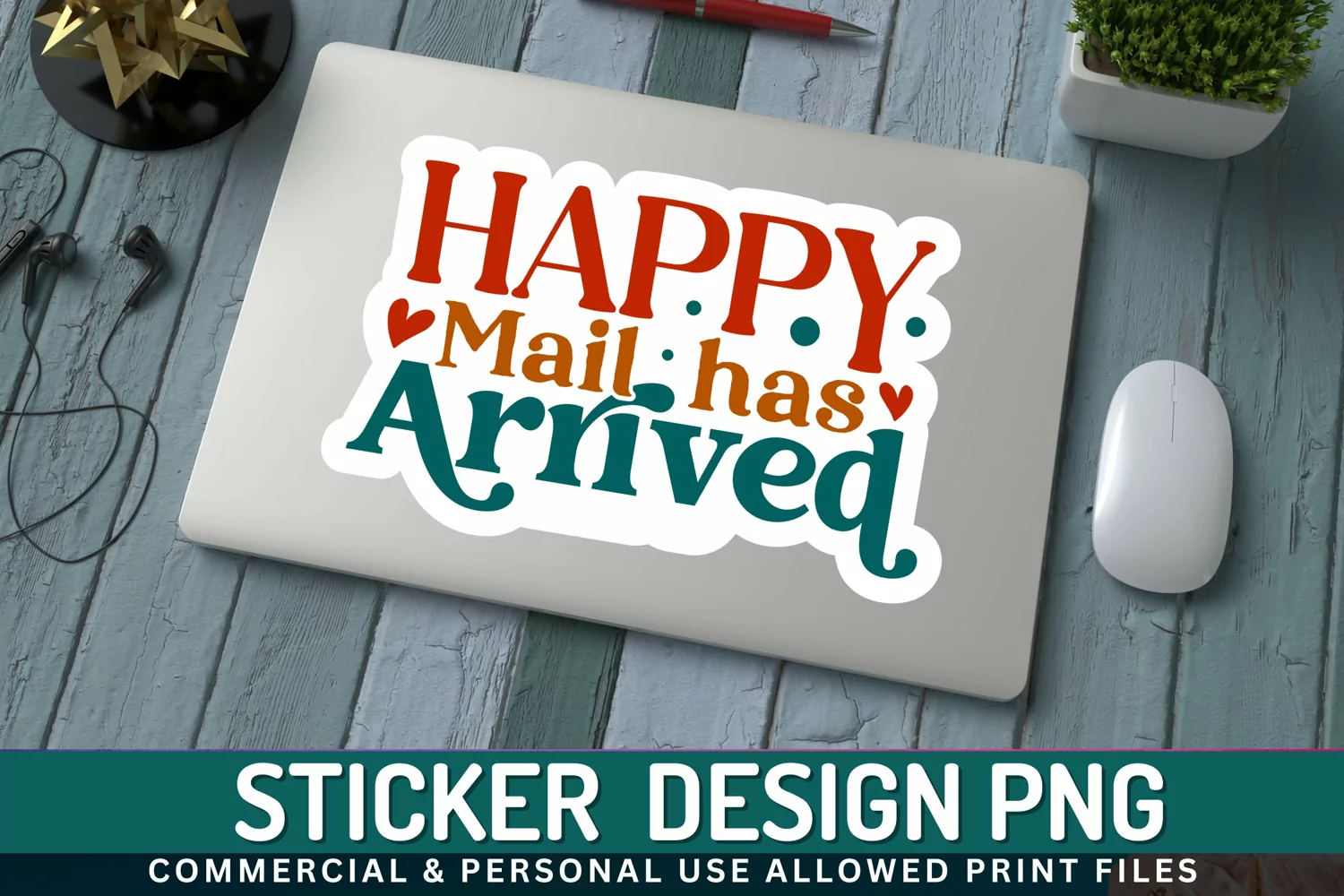 Happy Mail Has Sticker PNG was created by hand and then converted to a digital file.