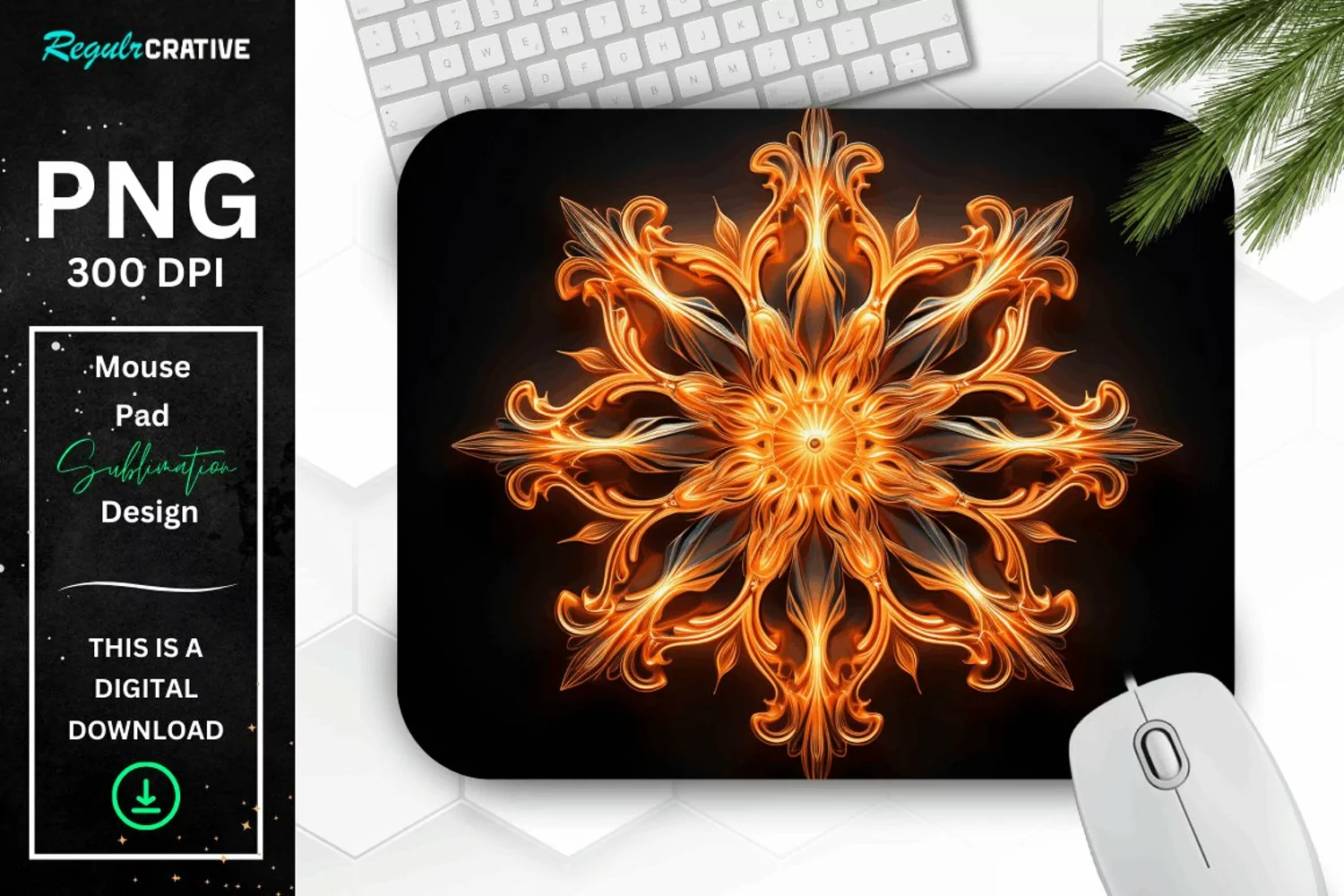 Home Decor Office Supplies Desk Accessories Mouse Pad Design Frozen Ice Fractal Snowflakes Mouse Pad Whimsical Colorful Snowflake Mouse Pad Design Whimsical Snowflake Backgrounds Colorful Snowflake Design Snowflake-themed Wallpapers Neon Glowing Orange Snowflake Mouse Pad
