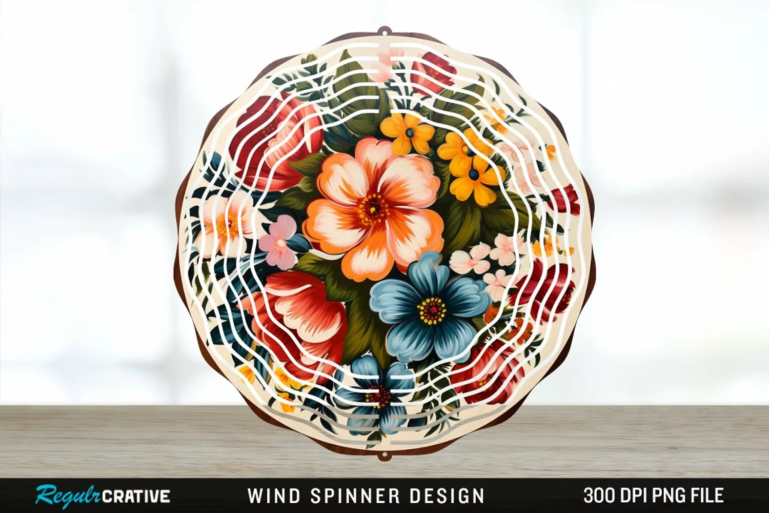 Painted Wood Flowers Wind Spinner Sublimation PNG Design example image 1