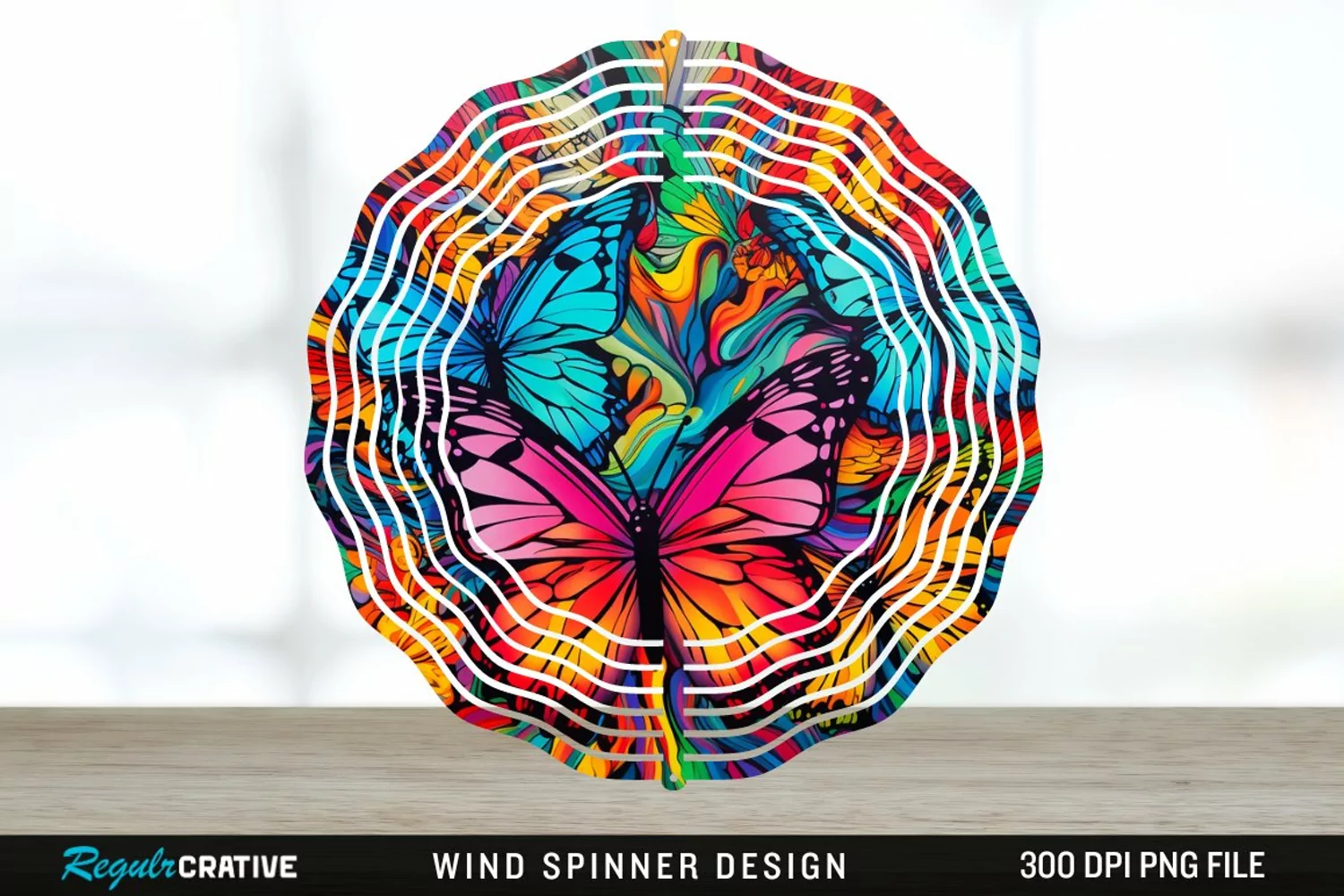 Psychedelic Butterflies Wind Spinner Sublimation PNG Design example image 1
