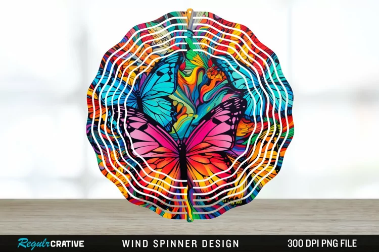 Psychedelic Butterflies Wind Spinner Sublimation PNG Design