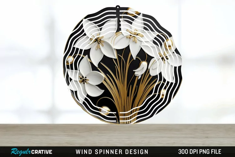 Similar Design Products to 3D Black and Gold Snowdrop Flowers Wind Spinner PNG Design