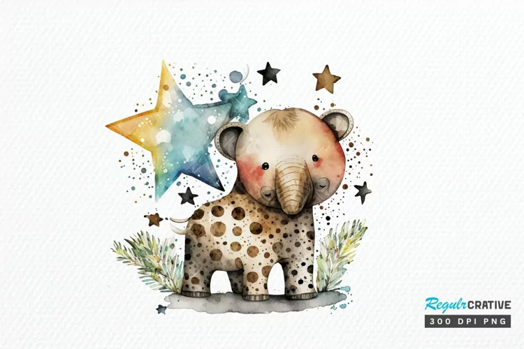 Watercolor cute animal superstar PNG Clipa example image 1