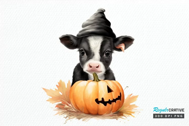 Cute Baby Cow For Halloween PNG Clipart example image 1