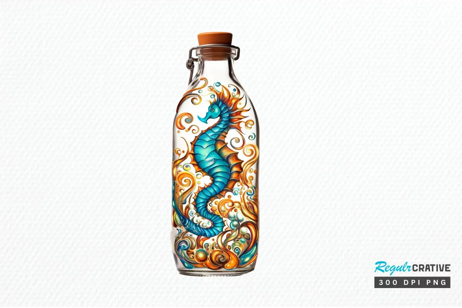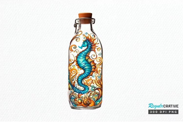 Hippocampus Glass Bottle Sublimation PNG Clipart example image 1