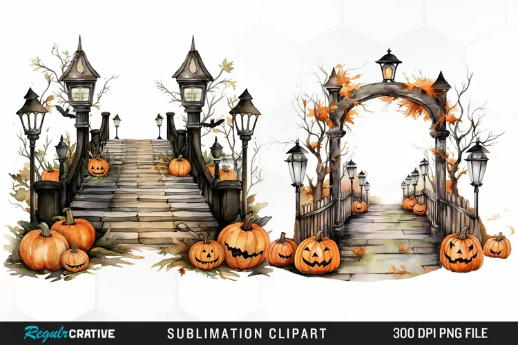 Digital Background Watercolor Clipart Instant Download Halloween Clipart Digital Prints Png Files Printable Wall Art Sublimation Designs Igital Download Halloween Walkway