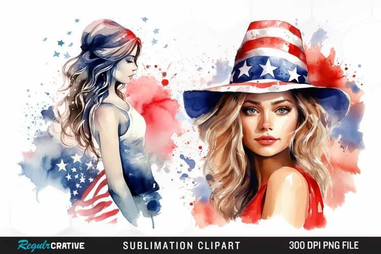 Clipart Png Clipart Set Sublimation Design Sublimation Clipart Sublimation Art Illustration Png Png Set Girl 4th July Sublimation Watercolor Girl 4th July Sublimation