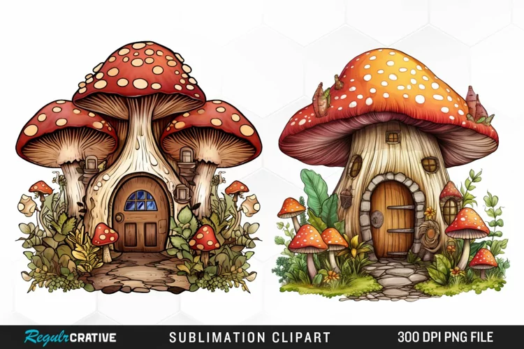 Mushroom Fairy Door Clipart Set