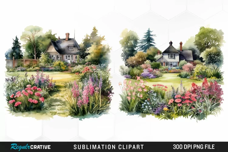 Similar Design Products to Garden Lawns Watercolor Graphics Clipart