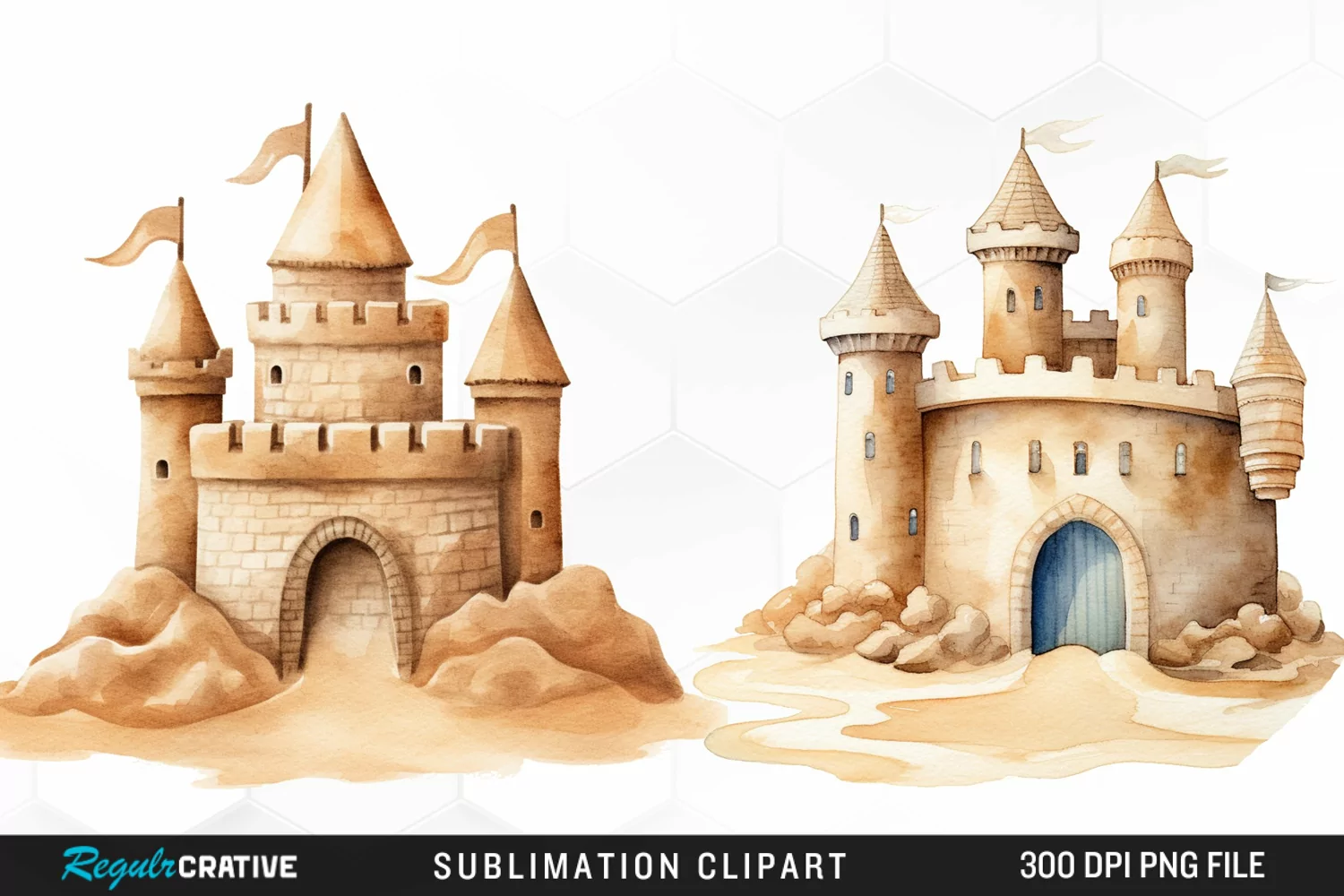 Watercolor Sandcastle Sublimation Art Clipart example image 1