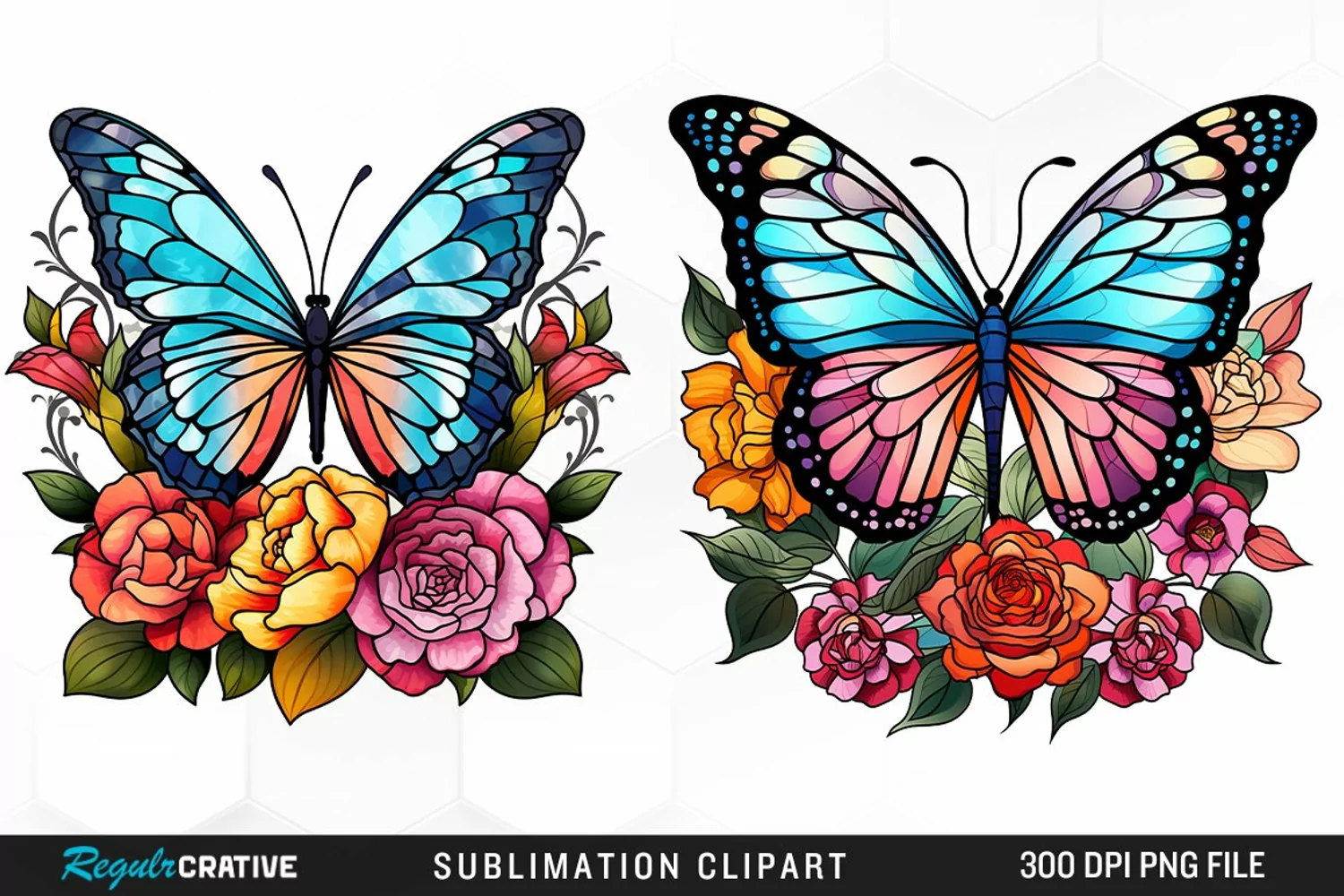 Similar Design Products to Stained Glass Butterfly And Flower Set Clipart