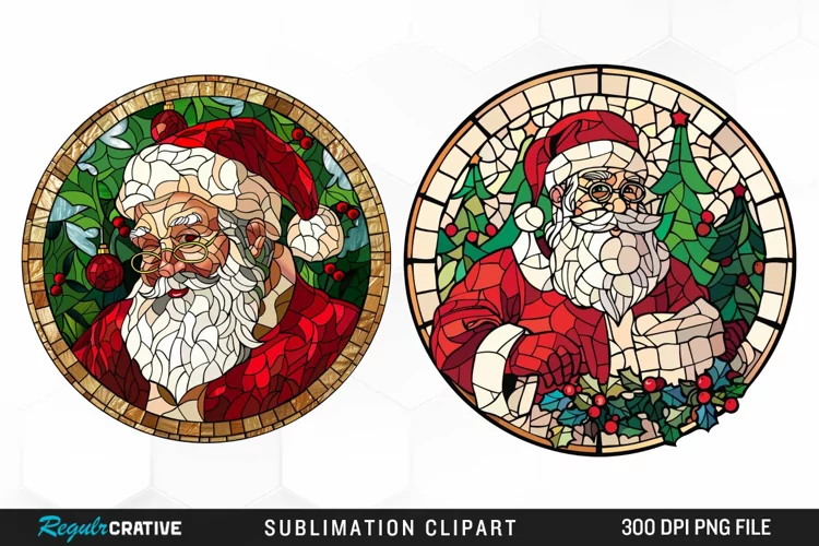 Stained Glass Santa Claus Sublimation PNG Clipart example image 1